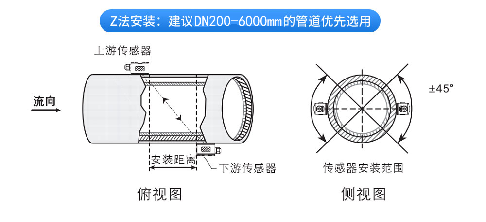 外夾壁掛式超聲波流量計利用了低電壓,多脈沖時差原理,采用高精度和超穩定的雙平衡信號差分發射、差分接收數字檢測技術來測量順流和逆流方向的聲波傳輸時間,根據時差計算出流速。具有穩定性好、零點漂移小、測量精度高,量程比寬抗干擾性強等特點。CN1