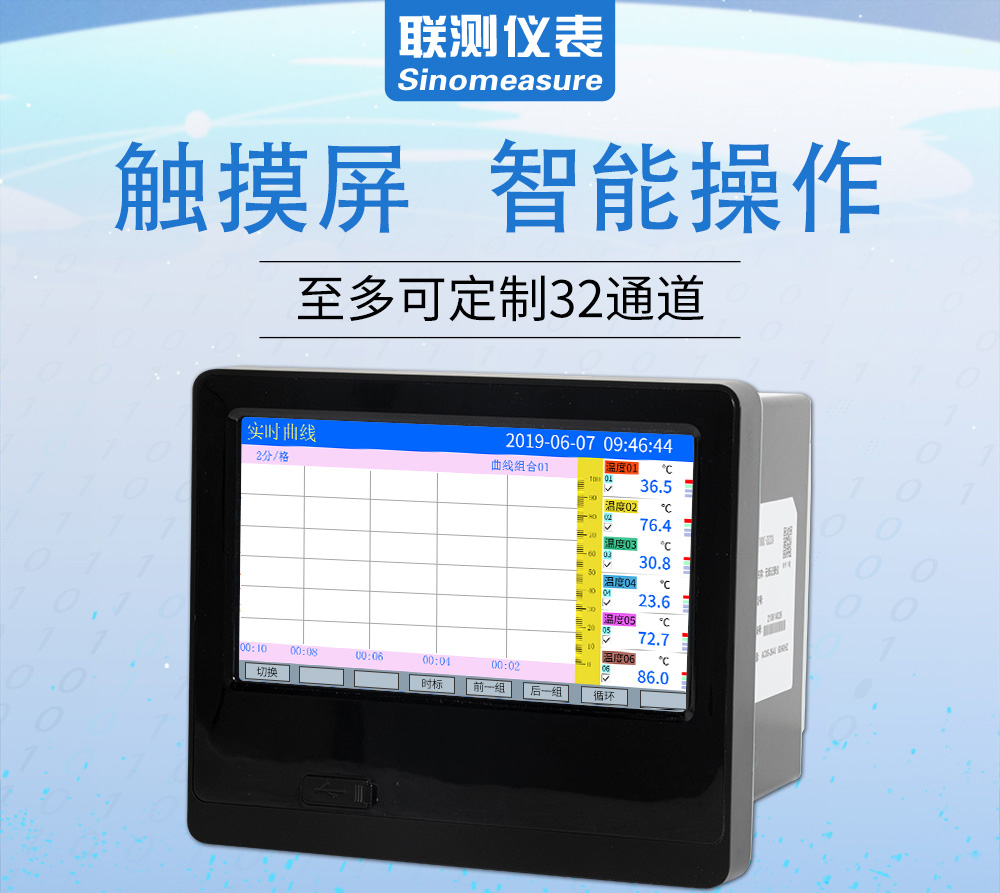 聯測_SIN-R8000C_(觸摸屏)1-32路可選_7英寸無紙記錄儀_溫度_壓力_多種參數