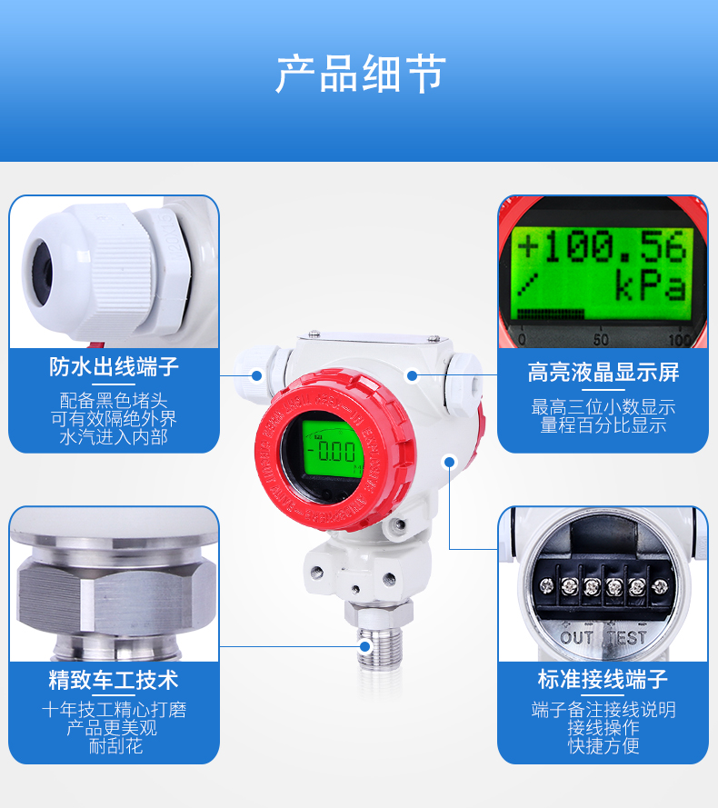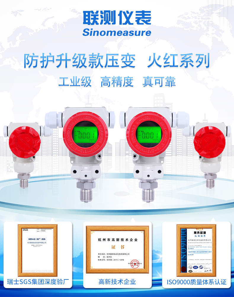 壓力變送器壓力敏感核心采用了高性能的硅壓阻式壓力 充油芯體,內(nèi)部的專用集成電路將傳感器毫伏信號轉(zhuǎn)換成標(biāo) 準(zhǔn)遠距離傳輸?shù)碾娏餍盘枺梢灾苯优c計算機接口卡、控制 儀表、智能儀表或 PLC 等方便相連。該系列產(chǎn)品廣泛應(yīng)用于 工業(yè)過程控制、石油、化工、冶金等行業(yè)。CN10