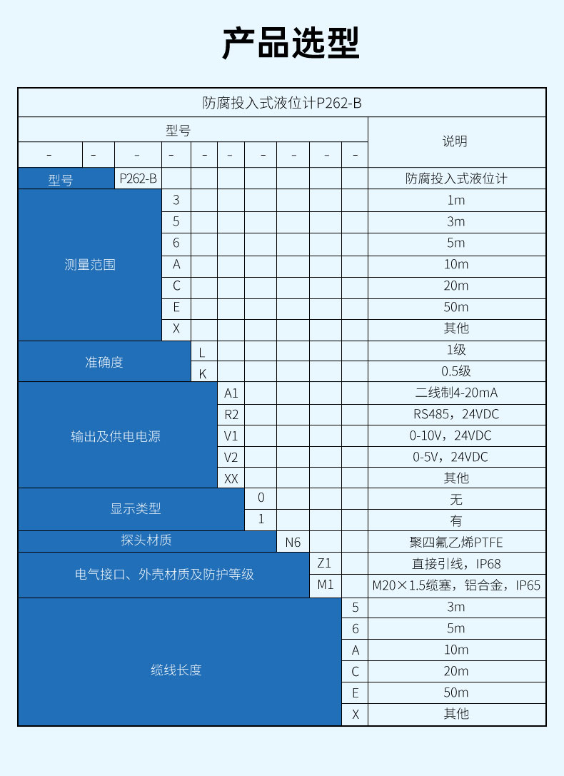 聯測_P262/P262-B防腐投入式液位計/水位計_陶瓷芯體_